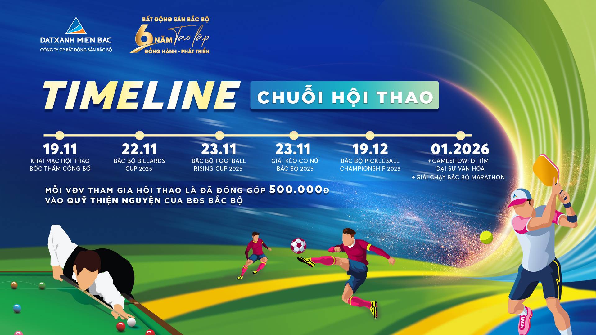 Tháng 11/2025 đánh dấu một cột mốc đặc biệt của Công ty Cổ phần Bất Động Sản Bắc Bộ – hành trình 6 năm hình thành và phát triển mạnh mẽ trên thị trường. Không chỉ là thời điểm nhìn lại những dấu ấn đáng tự hào, đây còn là dịp để tập thể Bắc Bộ cùng nhau viết tiếp tinh thần “6 năm tạo lập – Đồng hành, phát triển”, lan tỏa giá trị tốt đẹp đến cộng đồng với chuỗi Hội thao gây quỹ thiện nguyện của Bất Động Sản Bắc Bộ năm 2025.