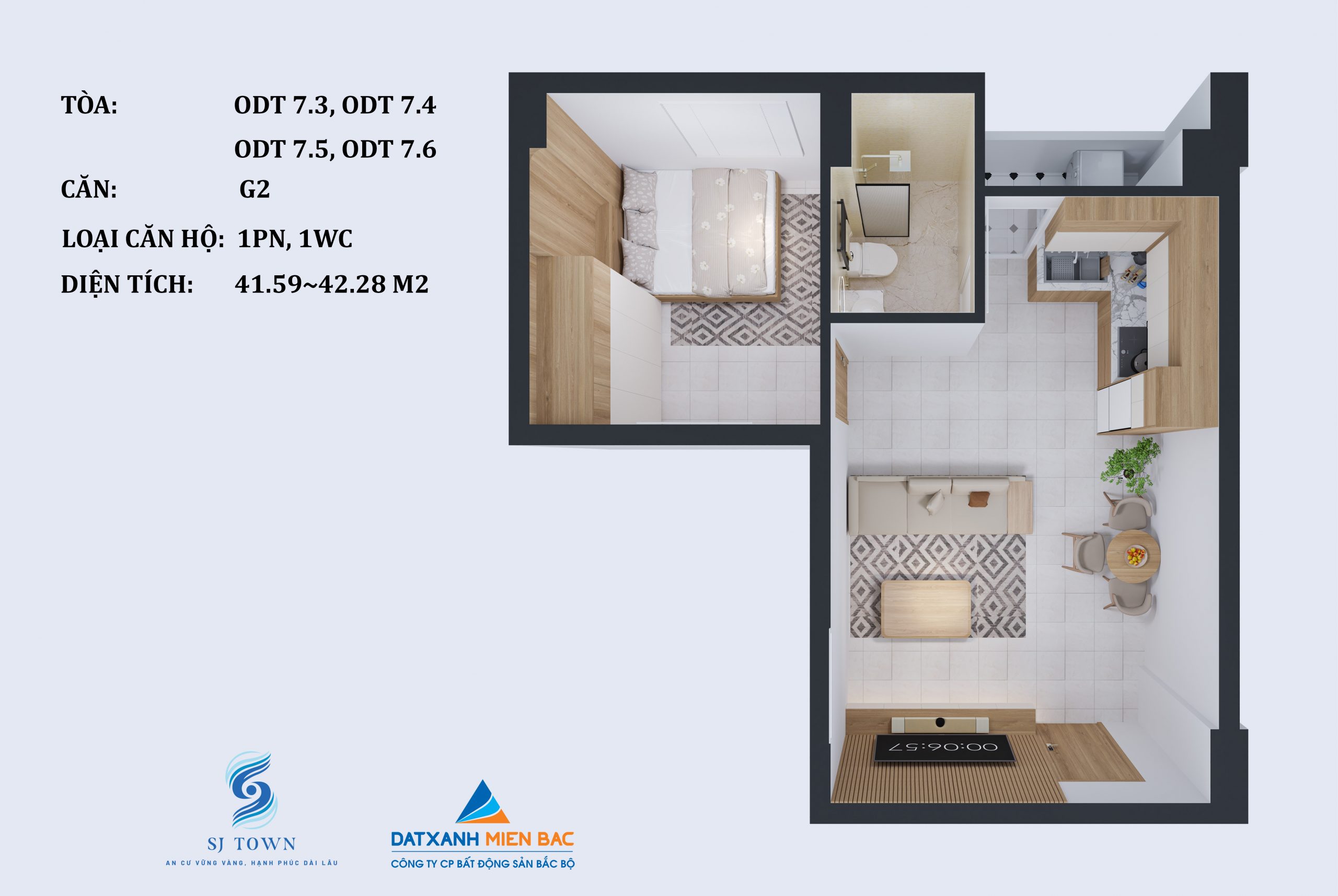 Tại SJ Town, các căn hộ được thiết kế 1PN và 2PN, tối ưu công năng sử dụng.