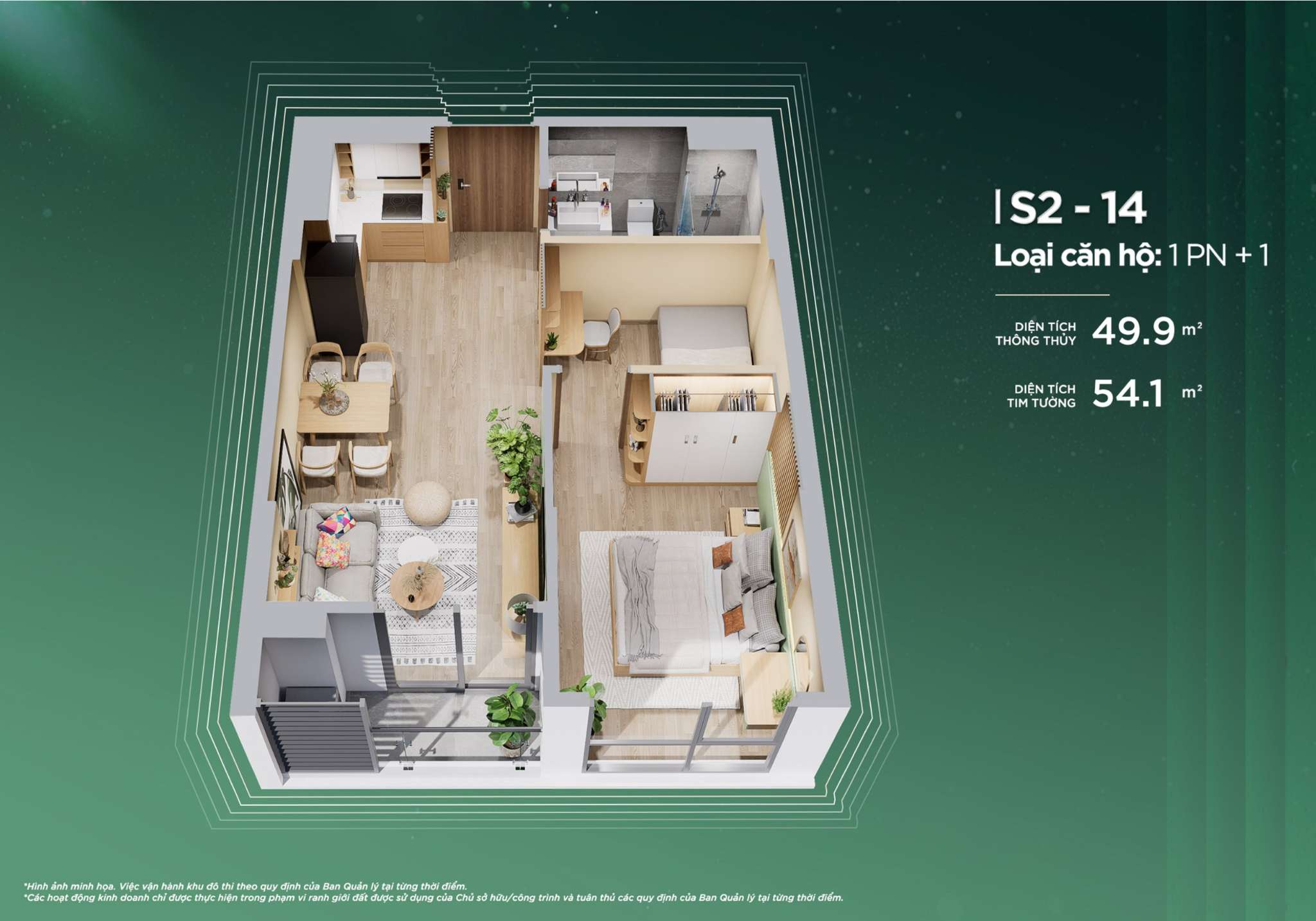 Hệ căn hộ đa dạng từ Studio, 1PN+1, 2PN, 2PN+1 đến 3PN, phù hợp với nhiều nhóm khách hàng: từ gia đình trẻ, người độc thân, chuyên gia… đến hộ gia đình đa thế hệ cần không gian rộng rãi để an cư lâu dài.