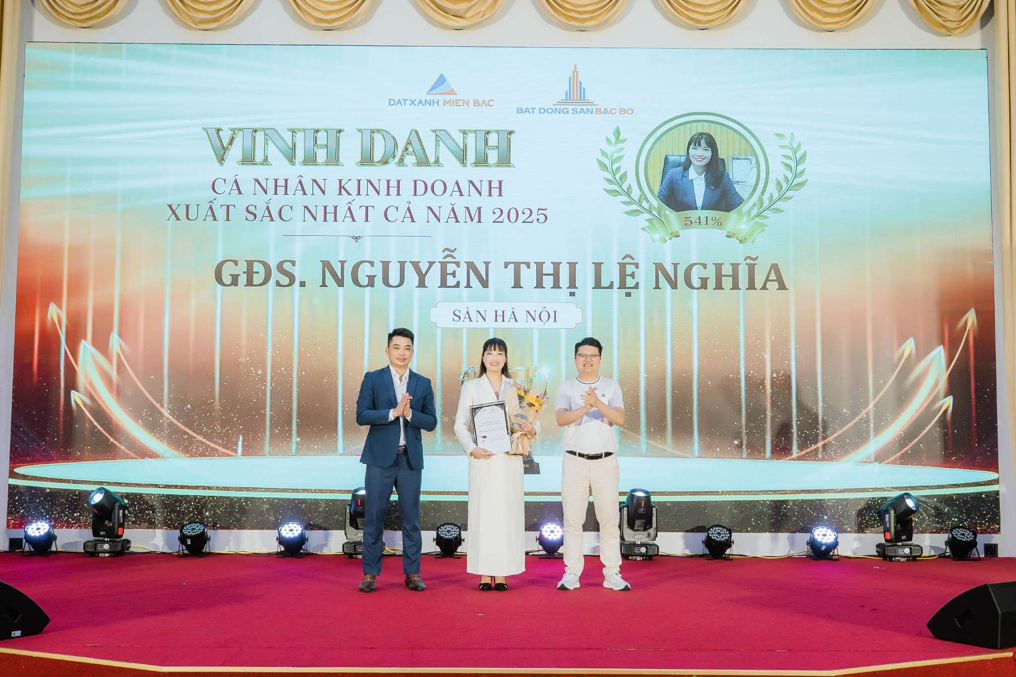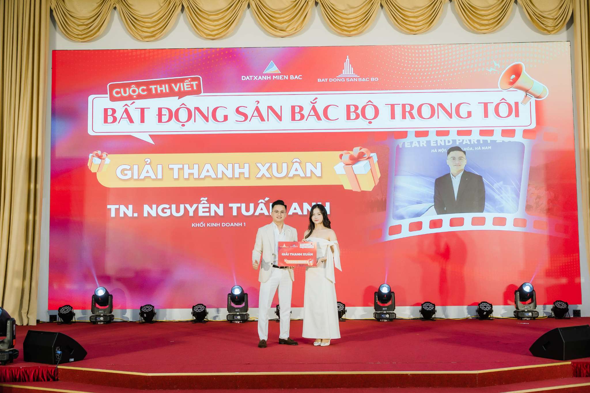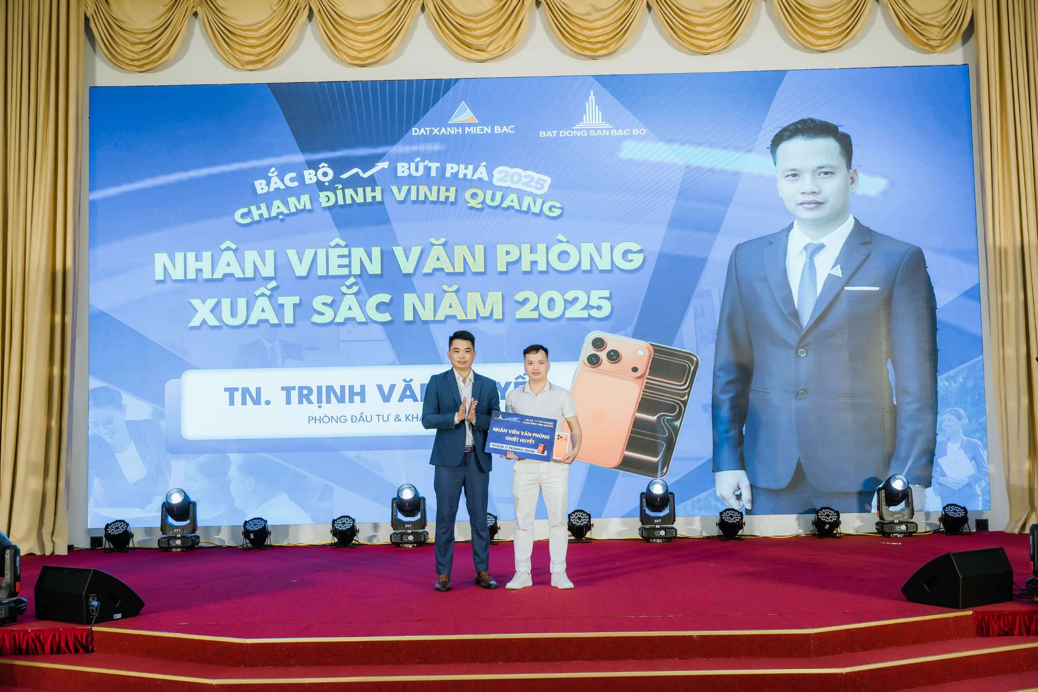 Trong không khí trang trọng và đầy cảm xúc của đêm Year End Party 2025, dưới sự chứng kiến của toàn thể CBNV Bất động sản Bắc Bộ, Ban Lãnh đạo đã long trọng vinh danh và trao thưởng cho các hạng mục: