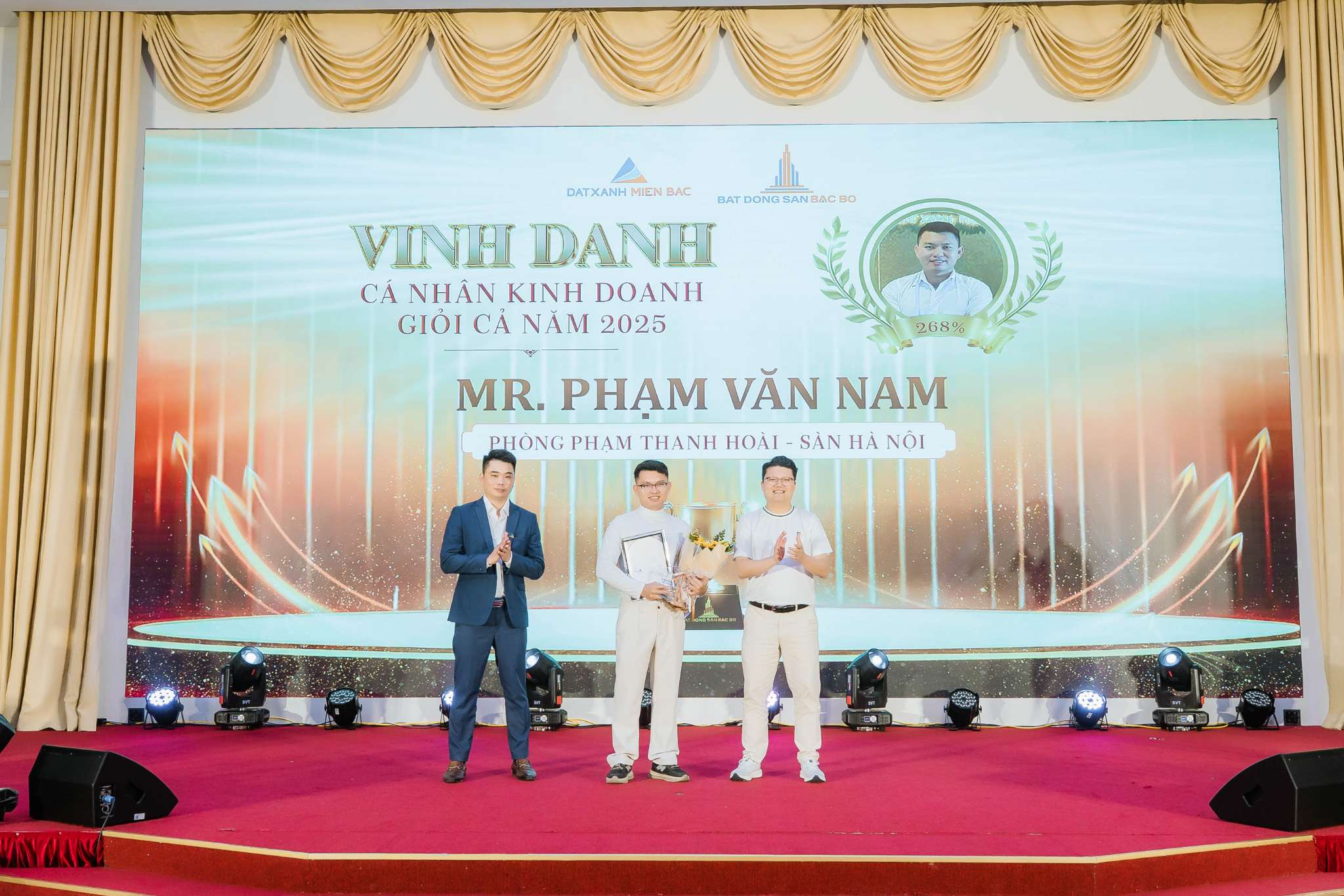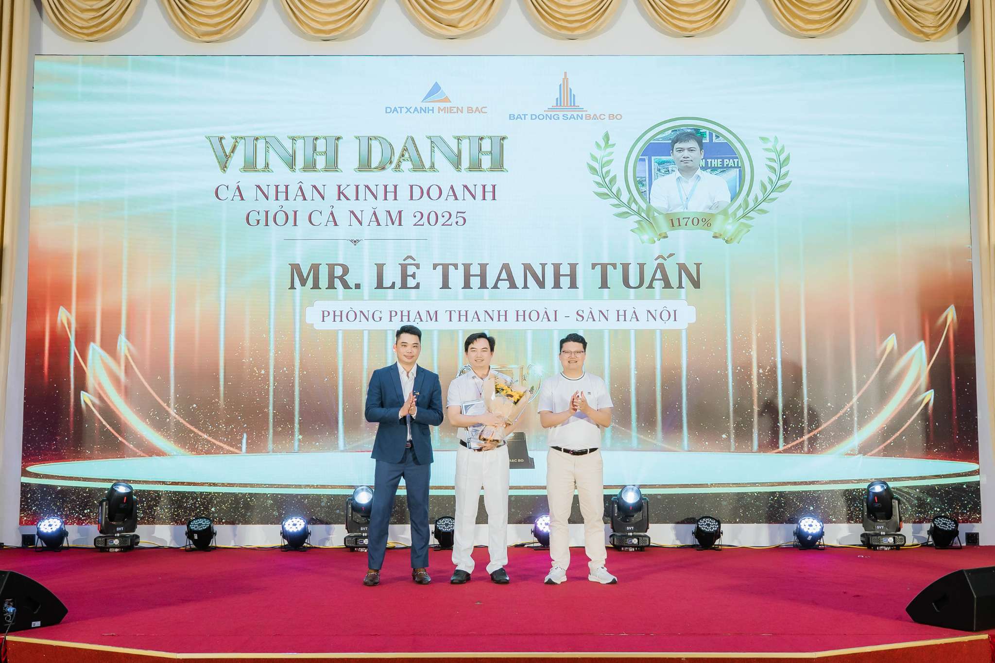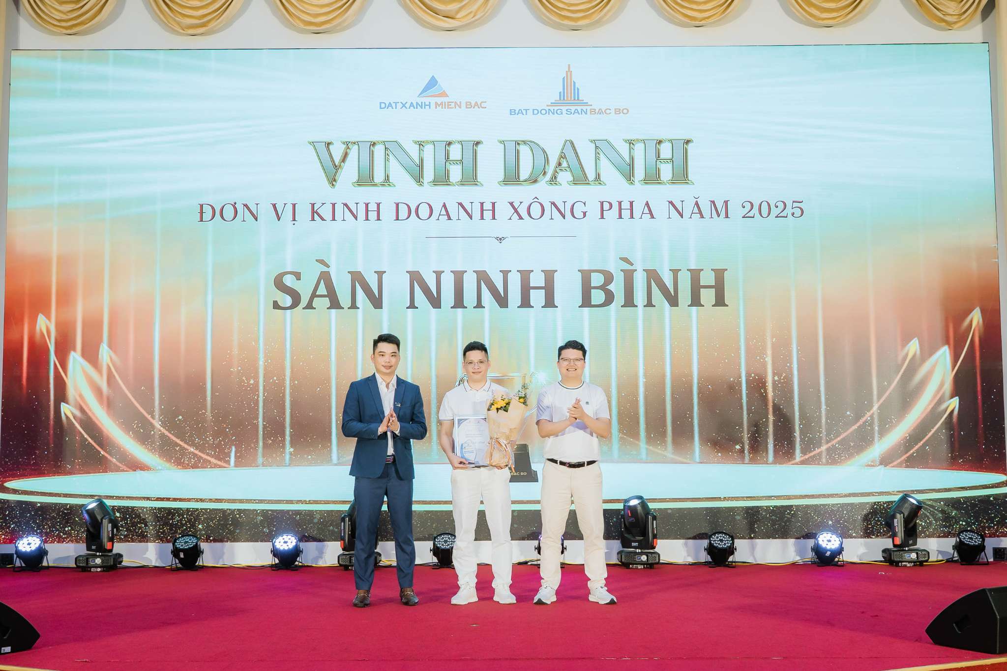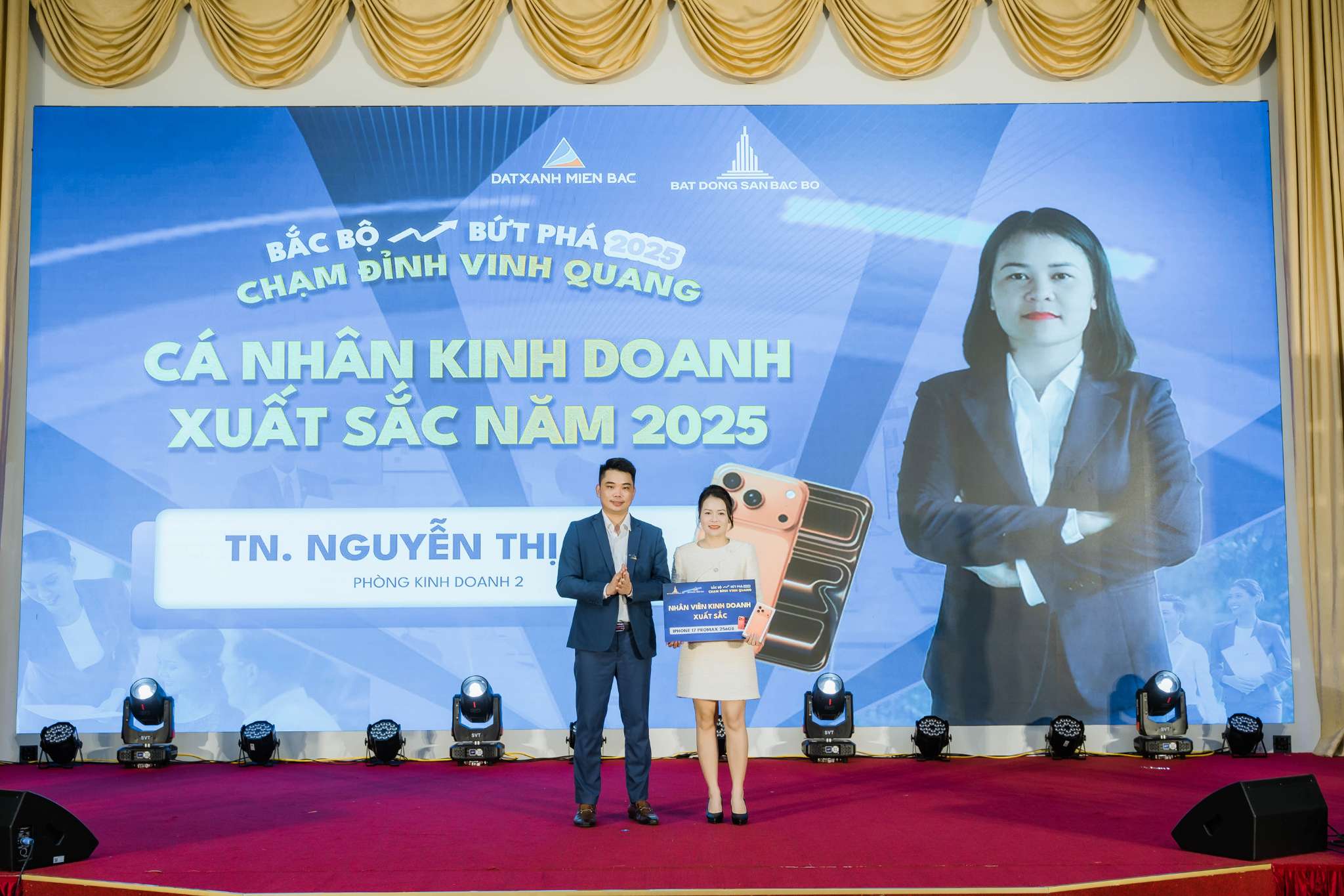 Trong không khí trang trọng và đầy cảm xúc của đêm Year End Party 2025, dưới sự chứng kiến của toàn thể CBNV Bất động sản Bắc Bộ, Ban Lãnh đạo đã long trọng vinh danh và trao thưởng cho các hạng mục: